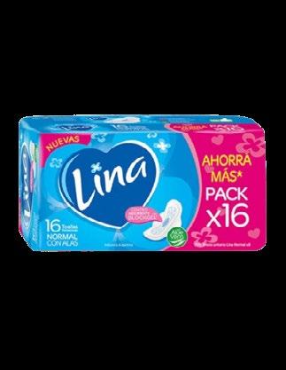 Toalla femenina LINA anatómica con alas x 16 u. Stock: 7.775 u. 1.849