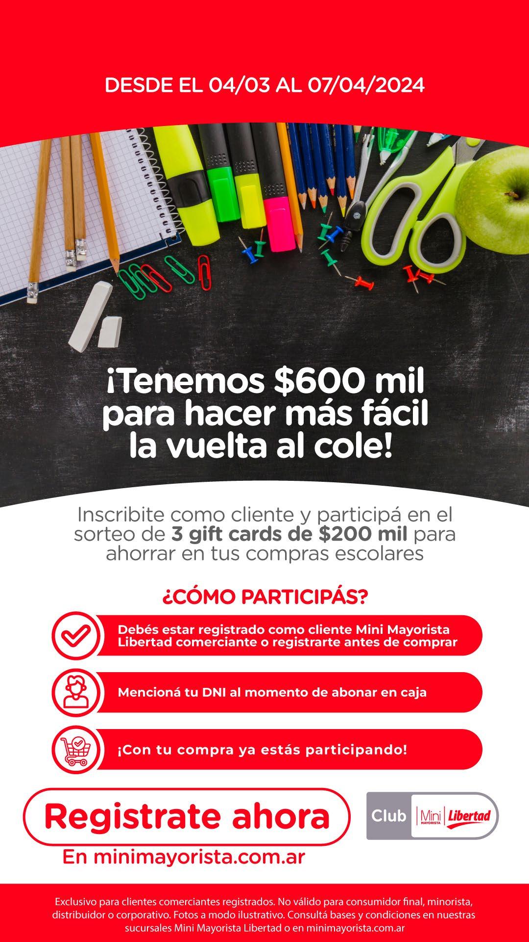 TE ASESORAMOS CON TU COMPRA MAYORISTA VÍA WHATSAPP. Válido del 03/04 al 07/04/2024 o hasta agotar stock Vigencia desde el 03/04 al 07/04/2024 o hasta agotar stock, lo que suceda primero. Las ofertas de este catálogo corresponden a las sucursales de Mini Mayorista Libertad de Córdoba, Mendoza, Rafaela, Rosario y San Juan. No disponible para sucursales de Mini/Petit/Hiper/FAN/Fresh Market/E-commerce Libertad. No acumulables con otros descuentos vigentes. Consulte montos mínimos y medios de pago en Servicio al Cliente. Fotos a modo ilustrativo. MIÉRCOLES 03/04 AL DOMINGO 07/04 799 Llevá 3 o más, pagá: Azúcar común AZUCEL/ LA PROVIDENCIA x 1 kg. Stock: 1.000 u. 519 Llevá 3 o más, pagá: Jabón en pan GIGANTE x 200 g. Stock: 1.000 u. 1.799 Llevá 3 o más, pagá: Vino VIÑAS DE BALBO tinto/chardonnay x 1,125 l. Stock: 3.281 u. en LATAS Y CONSERVAS seleccionadas. 15 Llevando 3 o más. en AGUAS, ENERGIZANTES, ISOTÓNICAS Y JUGOS. 10 Llevando 3 o más. en FIDEOS SECOS. 15 Llevando 3 o más. 15 Llevando 3 o más. en LAVADO Y COMPLEMENTOS DE LAVADO. en productos seleccionados para el CUIDADO DEL BEBÉ. 15 Llevando 3 o más. en FIAMBRES Y QUESOS seleccionados. 10 Llevando 3 o más.