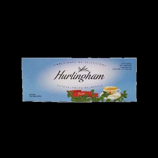 Llevá 3 o más, pagá: Té de boldo HURLINGHAM x 25 saquitos. Stock: 3.309 u. c/u