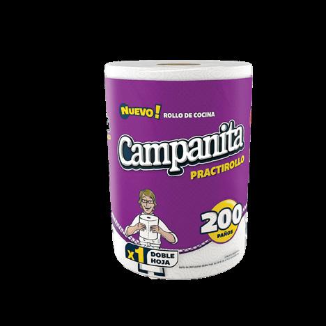 PRECIO NORMAL: $2.580 PRECIO SIN IMPUESTOS: $2.132,23 Rollo de cocina CAMPANITA practirollo x 200 paños. Stock: 13.300 u.