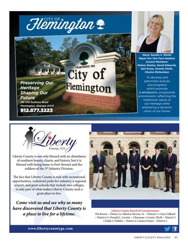 Liberty County Board of Commissioners Pat Bowen ~ District 4 • Marion Stevens, Sr. ~ District 1 • Gary Gilliard ~ District 5 • Donald L. Lovette ~ Chairman • Connie Thrift ~ District 3 • Eddie J. Walden ~ District 6 • Justin Frasier ~ District 2