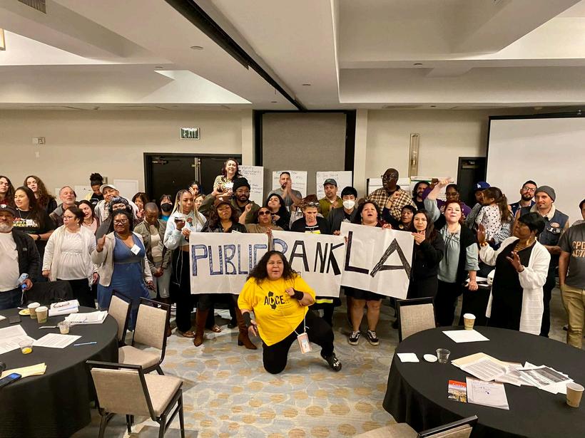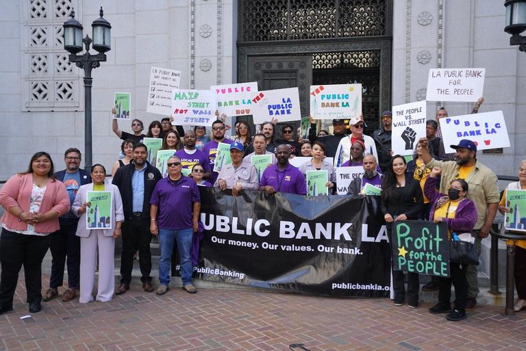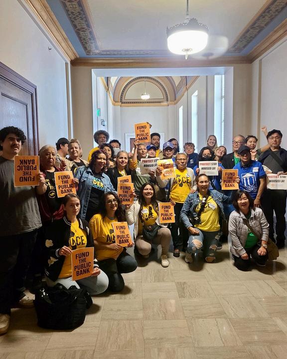 Public Bank LA coalition leaders include SEIU 721, ACCE Action, Move LA, Inclusive Action for the City, Destination Crenshaw, and United Parents and Students,