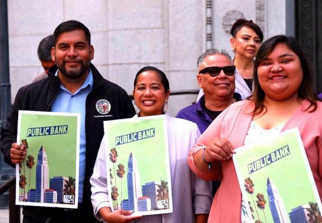 Eunisses Hernandez (CD1), Bob Blumenfield (CD3), Nithya Raman (CD4), Curren Price (CD9), Hugo SotoMartinez (CD13), and Ysabel Jurado (CD14), each contributed $15K from discretionary funds toward the public bank feasibility study.