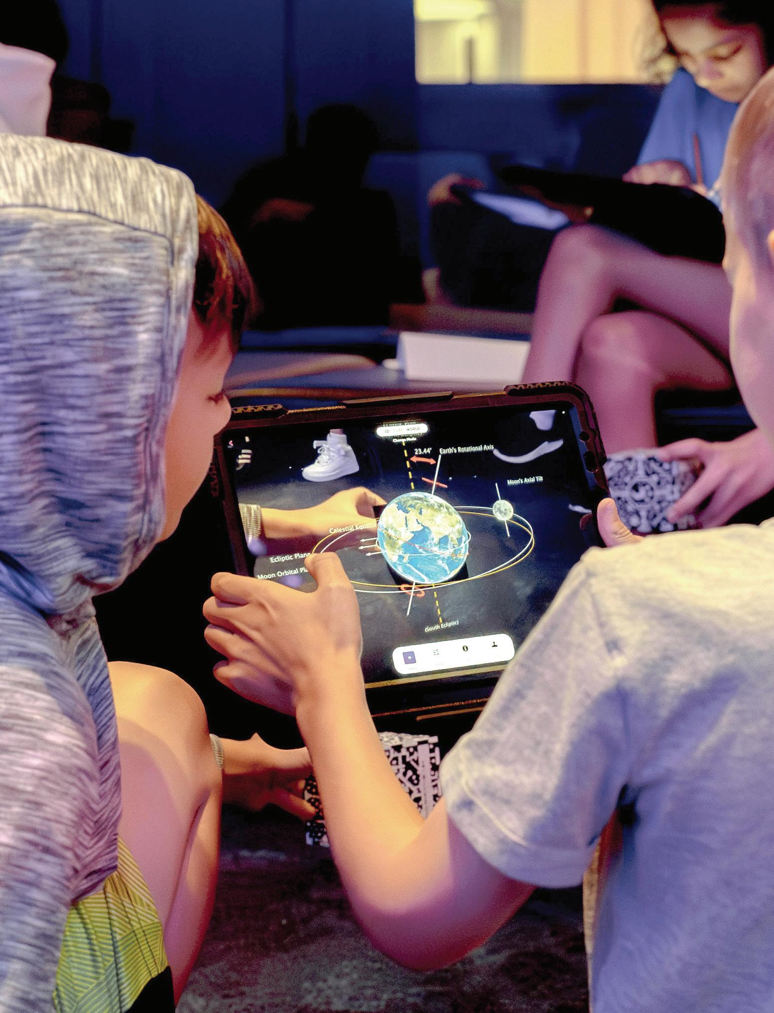 Learning Lab app with VR and study space as an immersive environment. Explore stars like never before to create supernovae, black holes and more. Form small groups of explorers then rotate between stations to engage in VR, AR, computer sims and physical learning models.