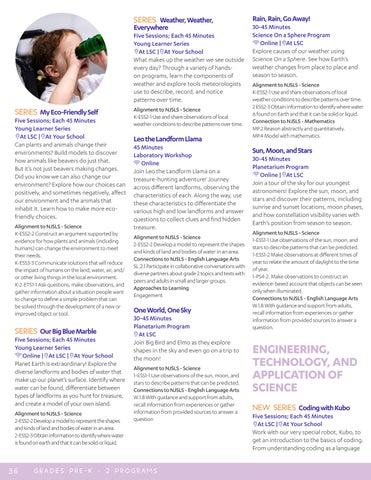 Through this STEM Education Guide, you will see a wide array of experiences, including standards-aligned stand-alone and series program offerings. Stand-alone programs leverage our educators’ expertise, enthusiasm, creativity, and passion and the Center’s assets. Through progressive interactions, series programs allow students to build better conceptual understanding and more in-depth skills.