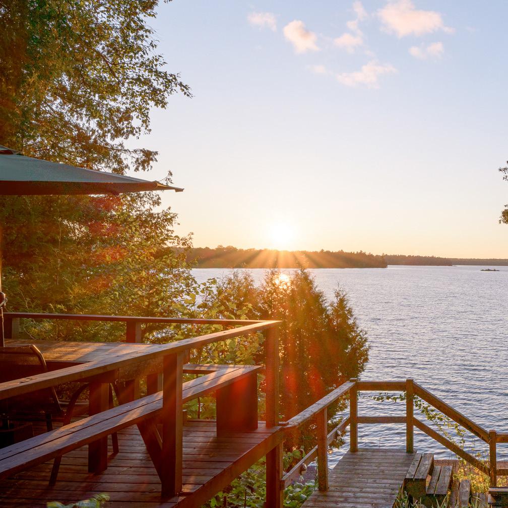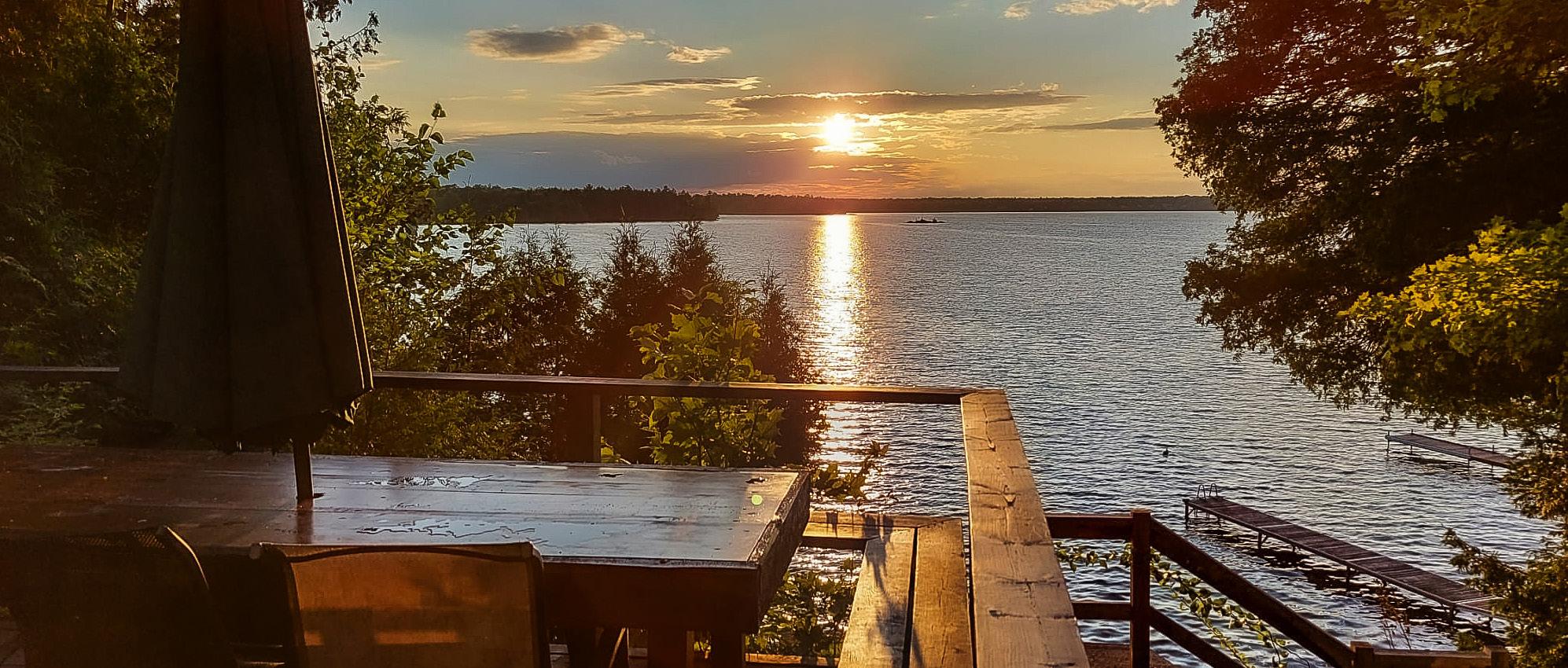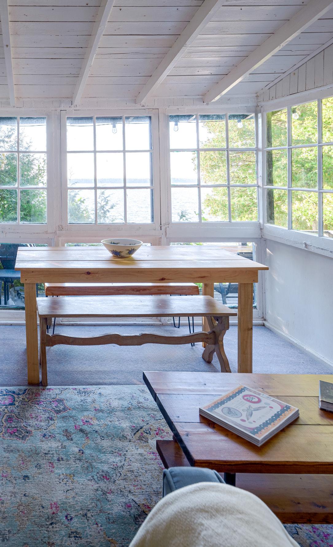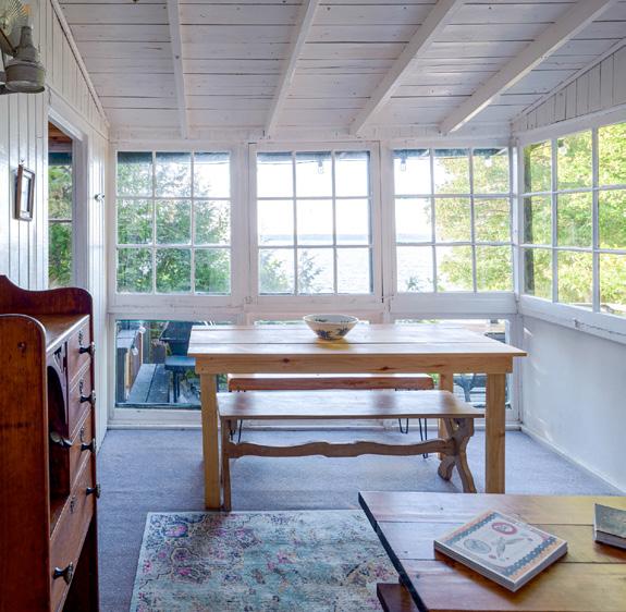 The sunroom is the perfect spot for morning coffee or relaxing with a glass of wine while watching the sunset over the lake. It also doubles as a dining area. Open the windows at night and you’ll hear the loons calling to each other. There’s nothing better!