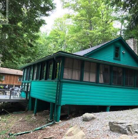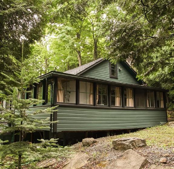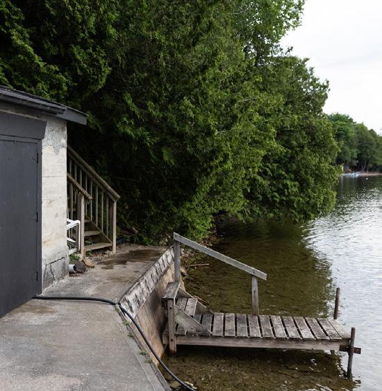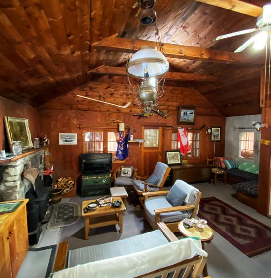 Indoors, the cottage offers three cozy bedrooms, an inviting open-concept lounge complete with a wood stove for warmth and ambiance, a wellappointed kitchen area, and a sunroom that bathes the space in natural light. Ascend to the second-floor loft space which provides a picturesque west-facing view overlooking the serene lake.