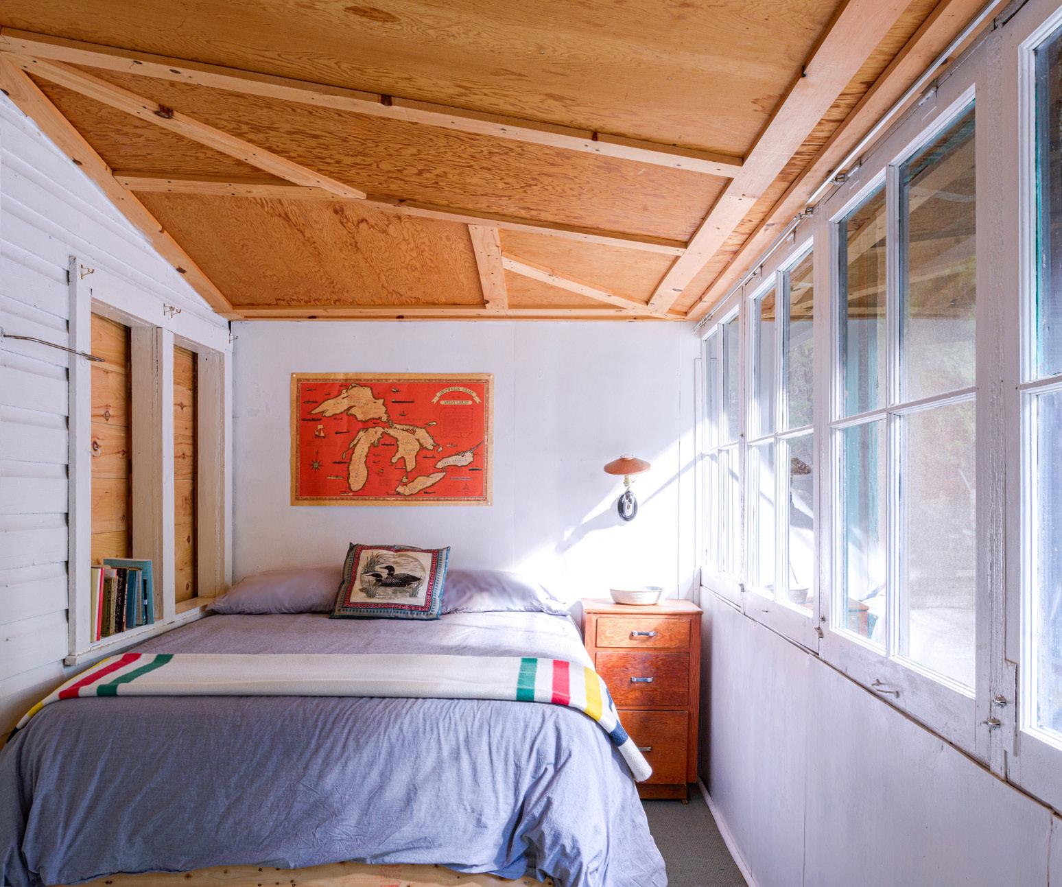 • Creation of a second-floor loft space complete with a staircase and dormer window overlooking the lake.