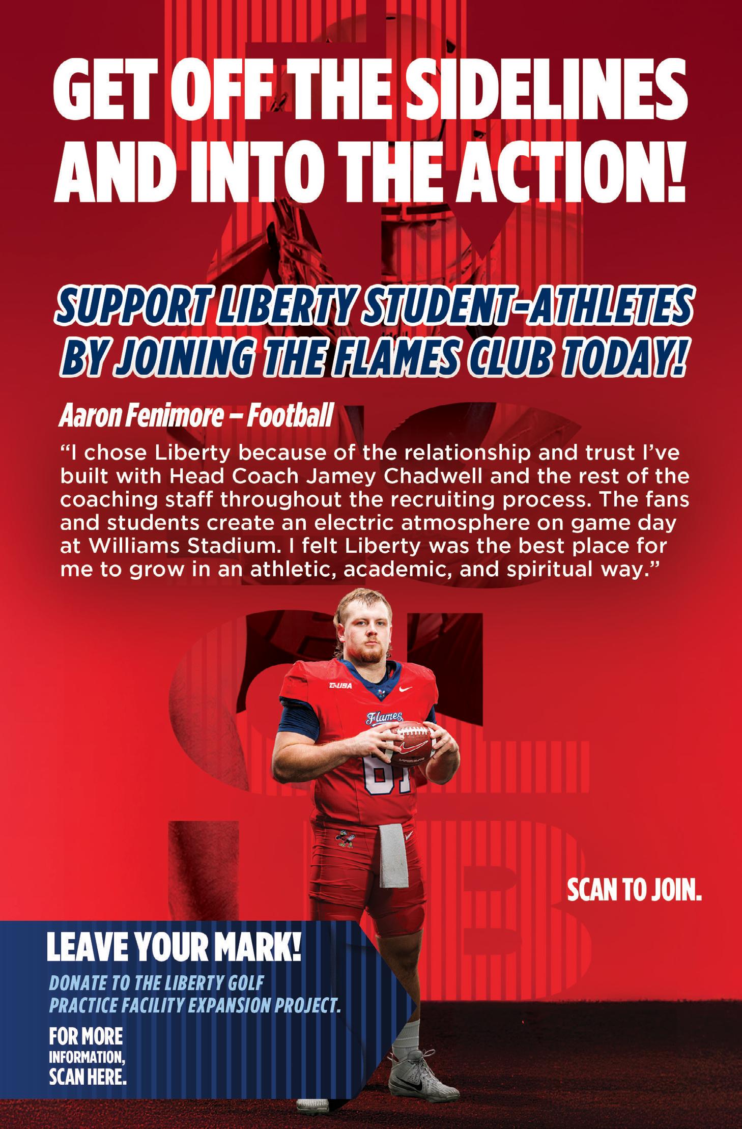Liberty is the third and final stop in the tight end’s six-year collegiate career. One of five players on Liberty’s roster who has played six seasons of football, he is also one of seven Flames who is making his third appearance on a different collegiate roster.
