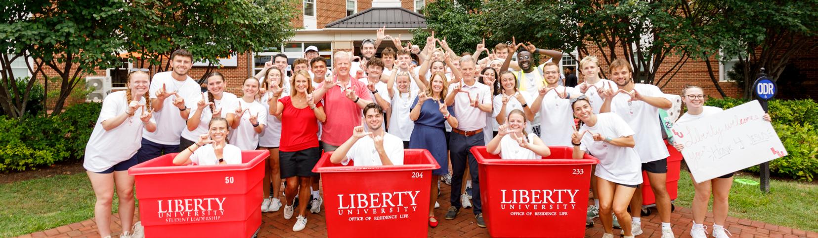 On Aug. 13, large groups of student leaders gathered and cheered in front of residence halls around campus to welcome Liberty University’s new students on the first day of move-in.