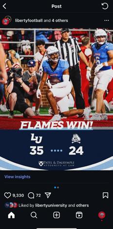 • Liberty is 38-8 at Williams Stadium since joining the FBS in 2018 and 151-57 all-time at the facility. This season, the Flames are 1-1 at home.