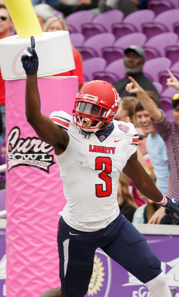 • RB Evan Dickens leads Liberty in rushing yards with 344 yards on 65 carries for a 68.8 yards per game average.