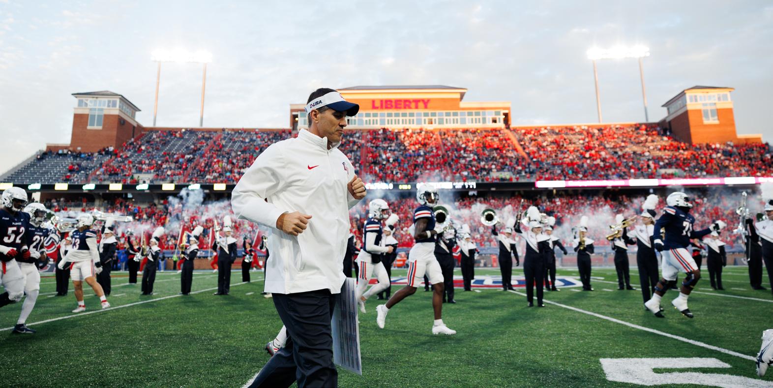 • Jamey Chadwell is 23-9 in his third year at Liberty and owns a 54-15 coaching record dating back to the start of 2020. The Flames are 14-2 at Williams Stadium under Chadwell.