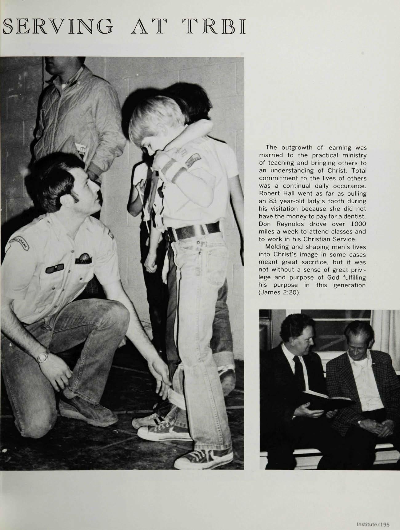 The heartbeat of LBC was the chapel services every Monday Wednesday and Friday The students' hearts were blessed by the preaching ofgreat men such as Dr John R. Rice,Dr.Lakin,and James Robison The favorite chapel speaker was LBC's own Chancellor, Dr. Jerry Falwell. Not only did the chapel have great preaching, but chapel music was always spiritually uplifting as well.