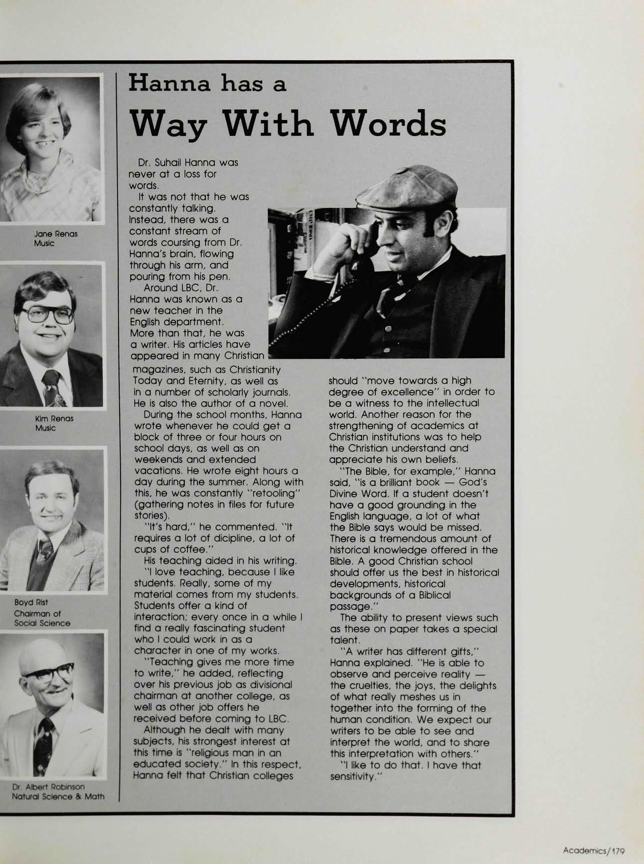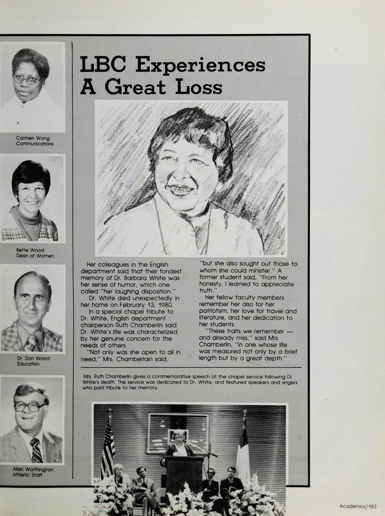 "The 1980 LBC yearbook staff became a microcosm of the whole school," Thomason said. "I could see it inthe interpersonal and working relationships of the staff."