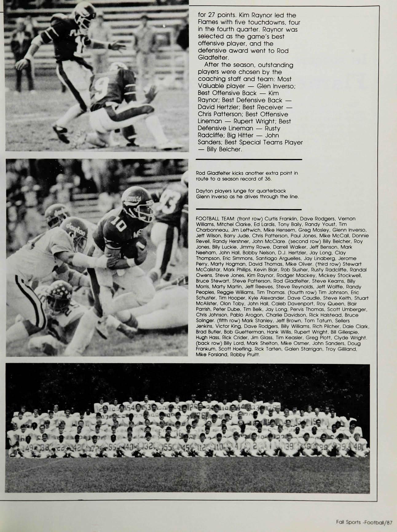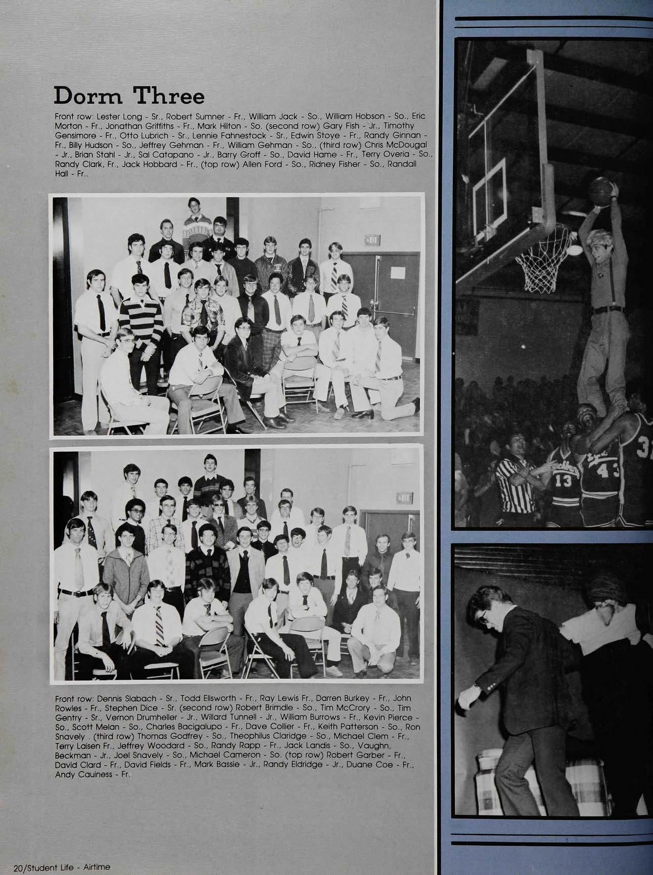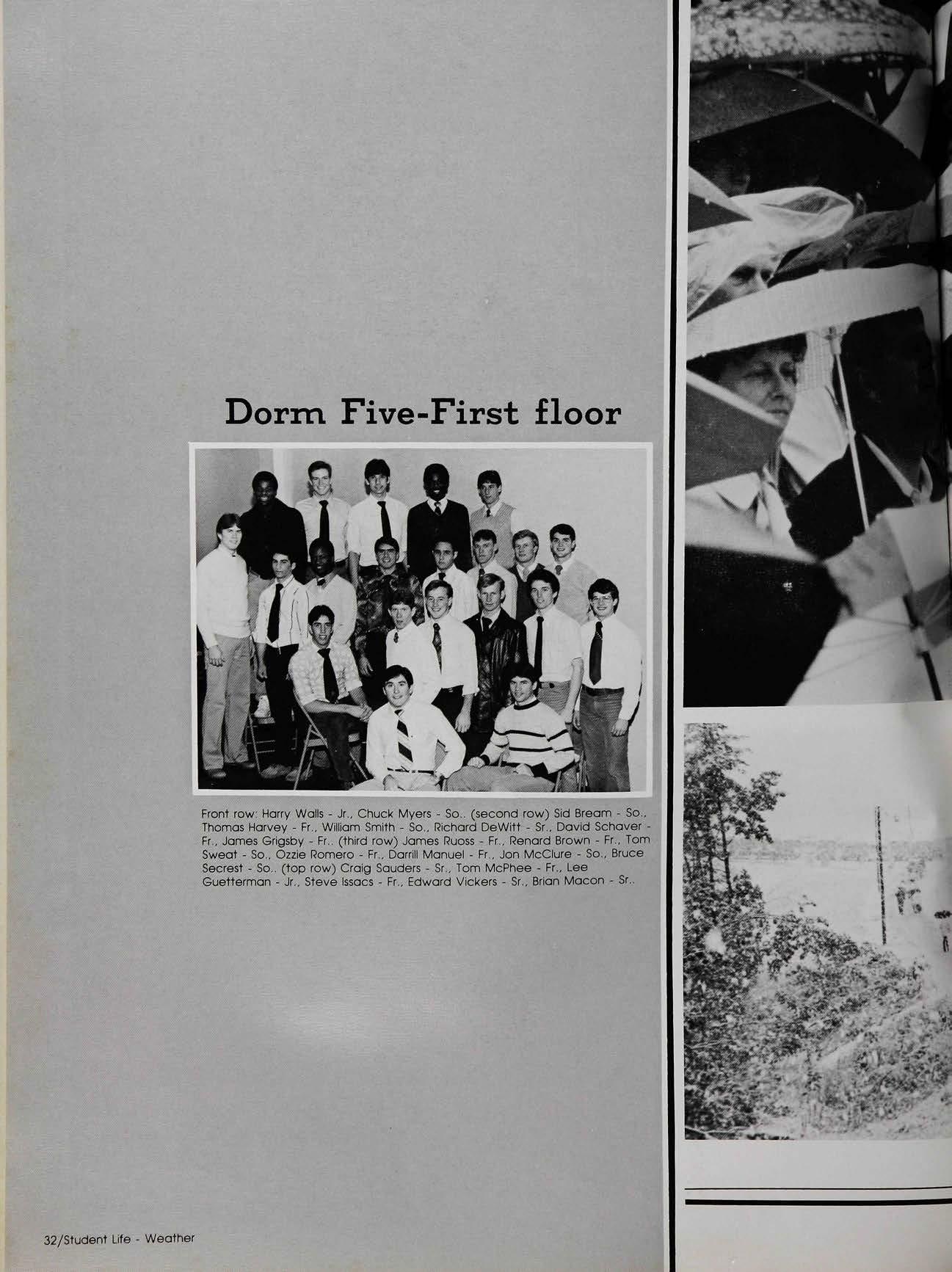 Front row:David Early-Jr., Steve Grandstaff -Jr., CharlesRhodes -Fr„ Andy Zivojinovic - Fr., Kevin Salsbury -Fr., RexRandolph -Fr„ Peter O'Driscoll -Fr., Coy Barnes -So Richard AllenFr., Christopher Bays - Fr., Randy Beaty -Fr., (second row)Stephen House -Jr., PhilipKelleySo., Rocky Erickson -So.,LeeWheless - Fr., Ramon Baker -Fr., Robert Bate -So.,David Bibb Jr., (thirdrow)Steve Sisler-So.,Charles Allen -Fr., Donald Morgan -Fr., Kerry Eberhard - Fr.. David Grabhorn - Fr., Jonathan Sprano -Jr., James Siegel-Ft., Kenneth Spranke -Jr.. Larry Counceller -So.,MarshallPalmer -Fr., (top row)Keith Johnston -Fr„ Rodney Dempsey - So., Kenneth Seiders-Sr., Tony Mitchell-Sr., Glenn Williams -So.,David Rogers - So.,