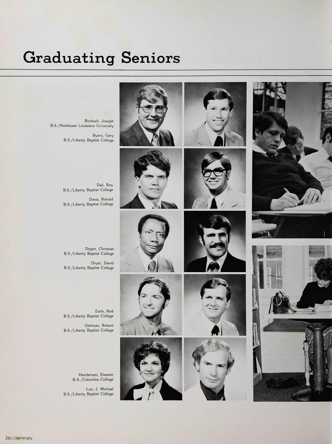 Liberty Baptist Seminary advanced through itssixth year of existence as an institution of higher learning committed to serving Jesus Christ At the Seminary, the goal has been to enrich and instill in the students a desire for academic excellence as well as create an evangelistic fervor in each one. As each student sought specialization in a particular field, Liberty Baptist Seminary provided a challenge to excel beyond undergraduate study Students atthe Seminary prepared to enter the fertile field of the world and to make a mark on this world for Jesus Christ.