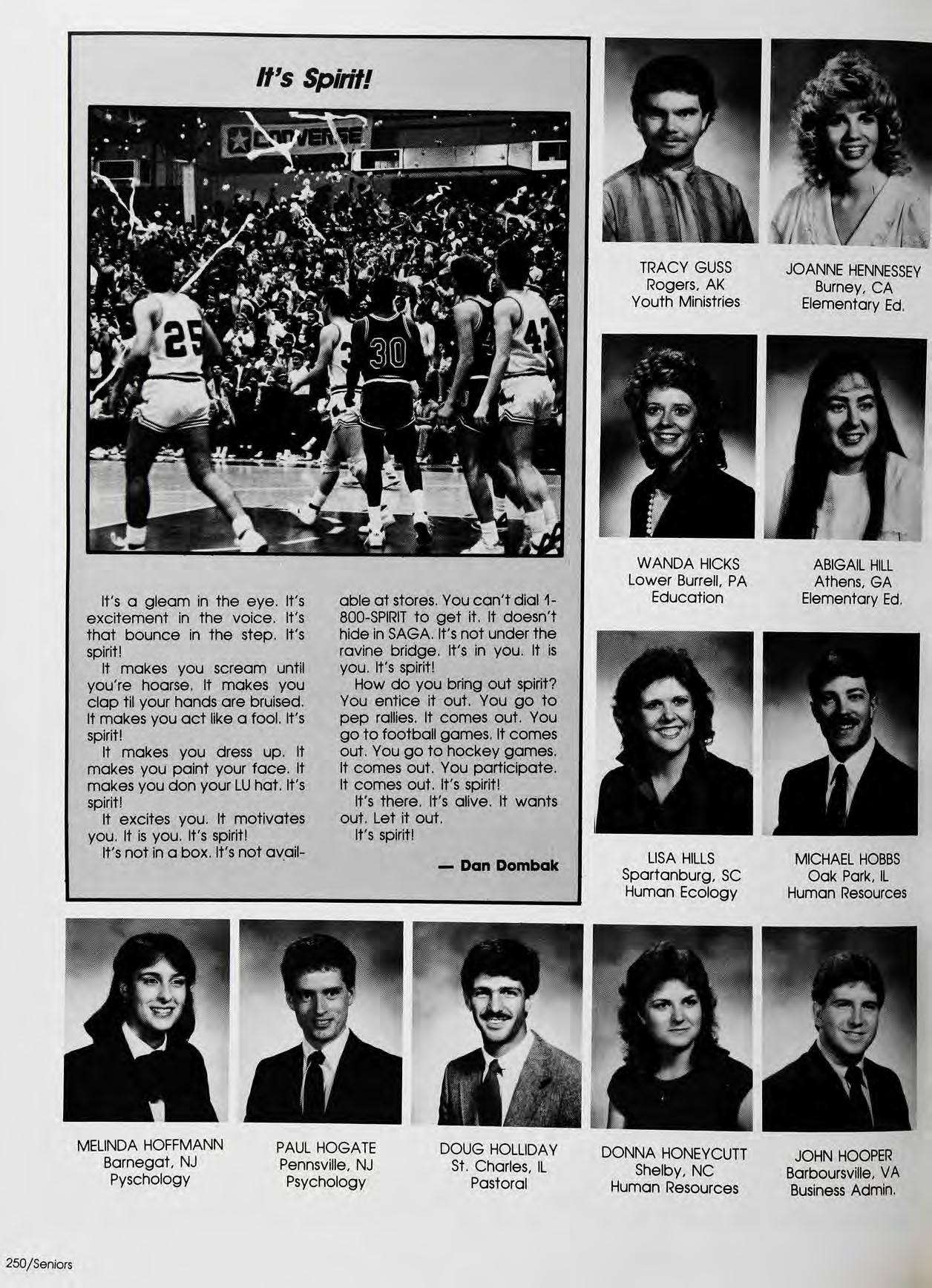 The 1987 Selah is the fourteenth volume of the yearbook ofLiberty University.The 400-page book was printed by Jostens American Yearbook Company,Clarksville, Tennessee. A press runof5,000copieswith a trim size of 9 by 12 inches was printed on 80-pound Gloss Enamel paper.