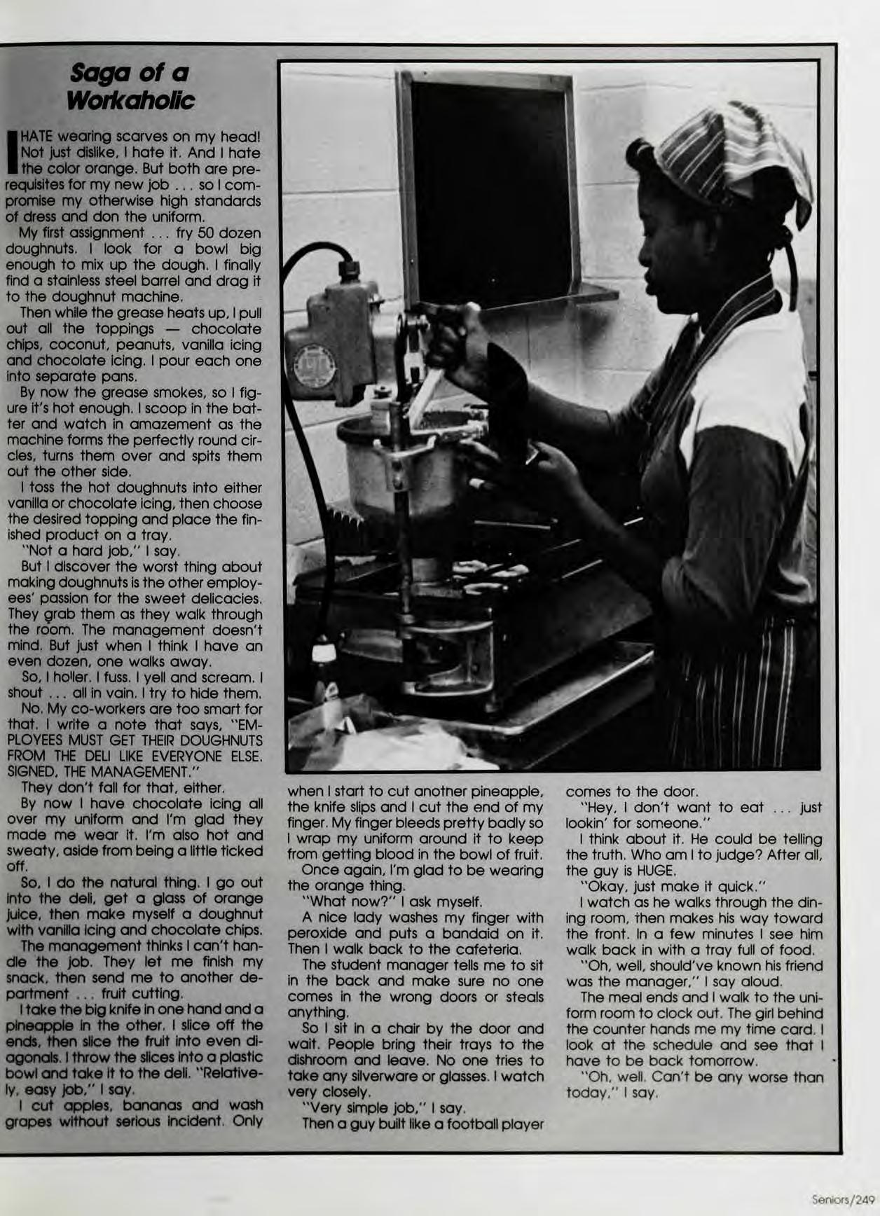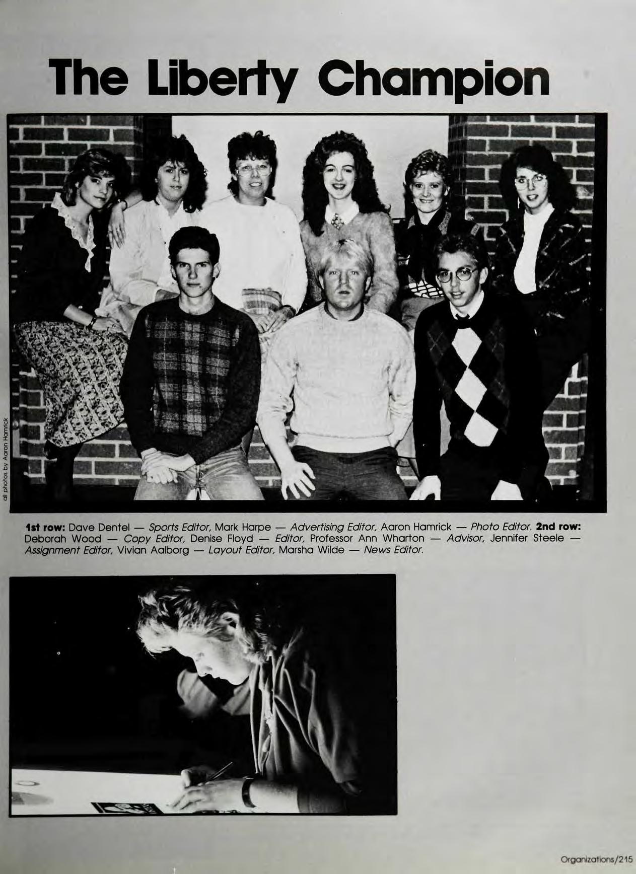 Barely finishing the picture taking, we had design, layout, names, and artwork for 88 pages to do in three days. My first collegiate "all-nighter" turnea into my first three collegiate "all-nighters." It was here Ifound a uniqueway tomake friends— stay up