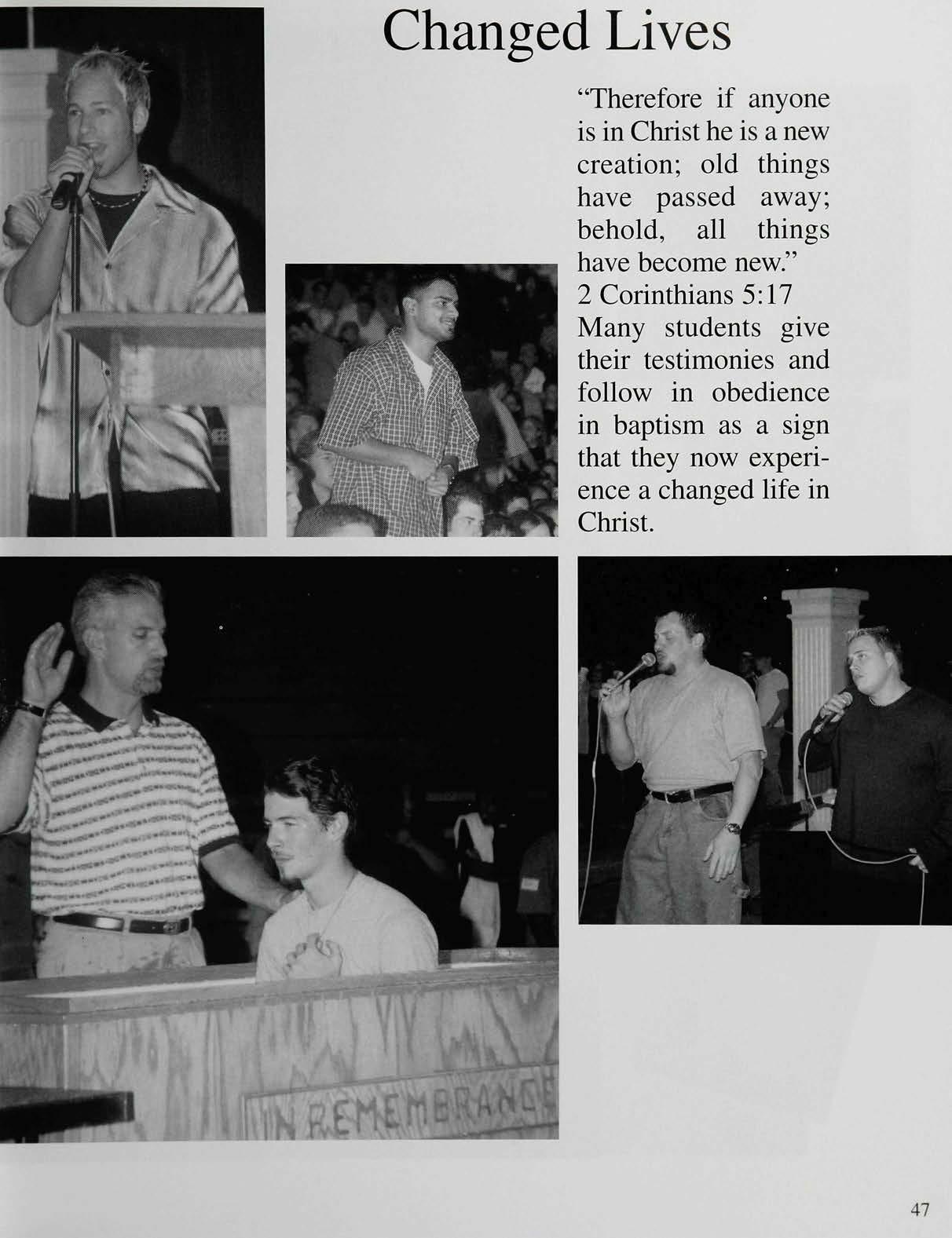 Some of the guest speakers included: Dave Adams, Jim Law, David Ford, Jerry Wells, Randy Spencer, Doug Randlett, and Dr. Charles Fuller. Dr. Jerry Falwell and Dr. Lovett have also taken the time to address the students. Ministry chapel was an exciting time of worship time and time again.