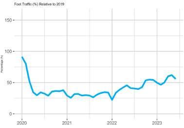 • Notes a decrease in foot traffic since 2019 (largely due to the pandemic), with some recovery in 2023.