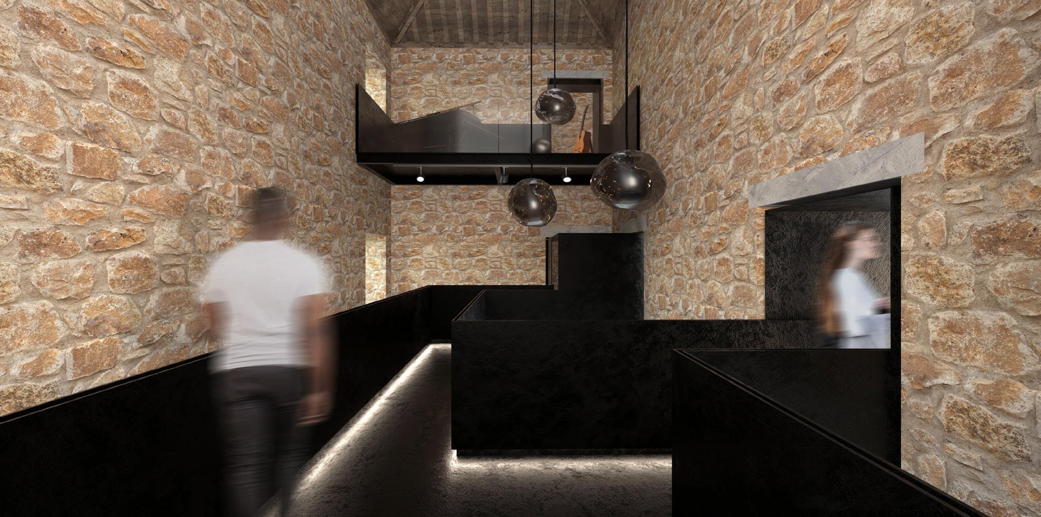 Influenced by the compression and rarefaction of a sound wave, the walkways and steel interventions are purposefully organized to guide visitors through small, dark, compact spaces and then out into the more expansive, double and triple height areas. This process repeats throughout the exhibition, building up a truly phenomenological experience.
