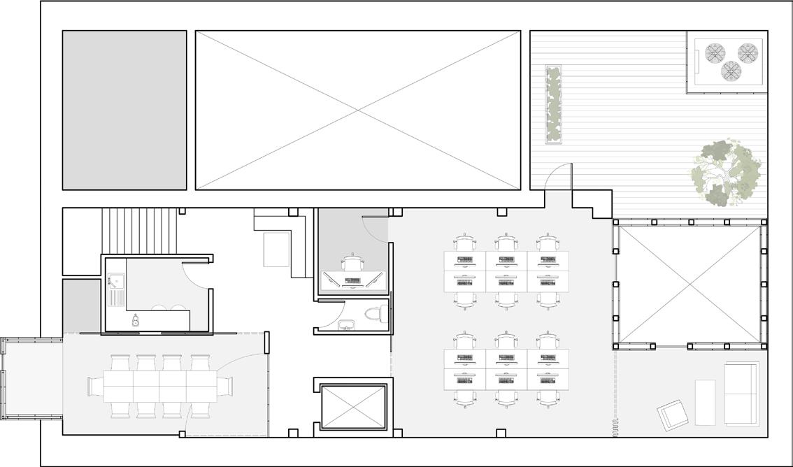 5. 2mm custom matt black aluminium profile by Phoenix aluminium Throughout the retrofit, a series of aluminium framed polycarbonate panels are arranged on a track system to form partition walls between different areas of the building, accommodating for different spatial and functional requirements. 35mm Marlon ST Polycarbonate sheets are fitted into the aluminium frame, providing a physical separation while still allowing light into the spaces.