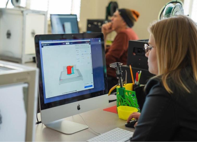 One standout example of JMU’s innovative learning environment is 3SPACE, the nation’s first 3D printing classroom designed for general education courses. Hosted in Carrier Library from 2018 to 2023, 3SPACE is where thousands of JMU students first experienced maker-centered learning in this technology-enhanced teaching environment. Currently located in Lakeview Hall, 3SPACE allows Dukes to immerse themselves in hands-on making as part of their learning journey.