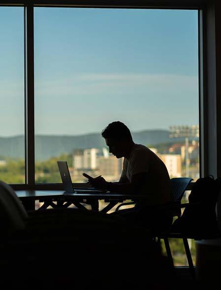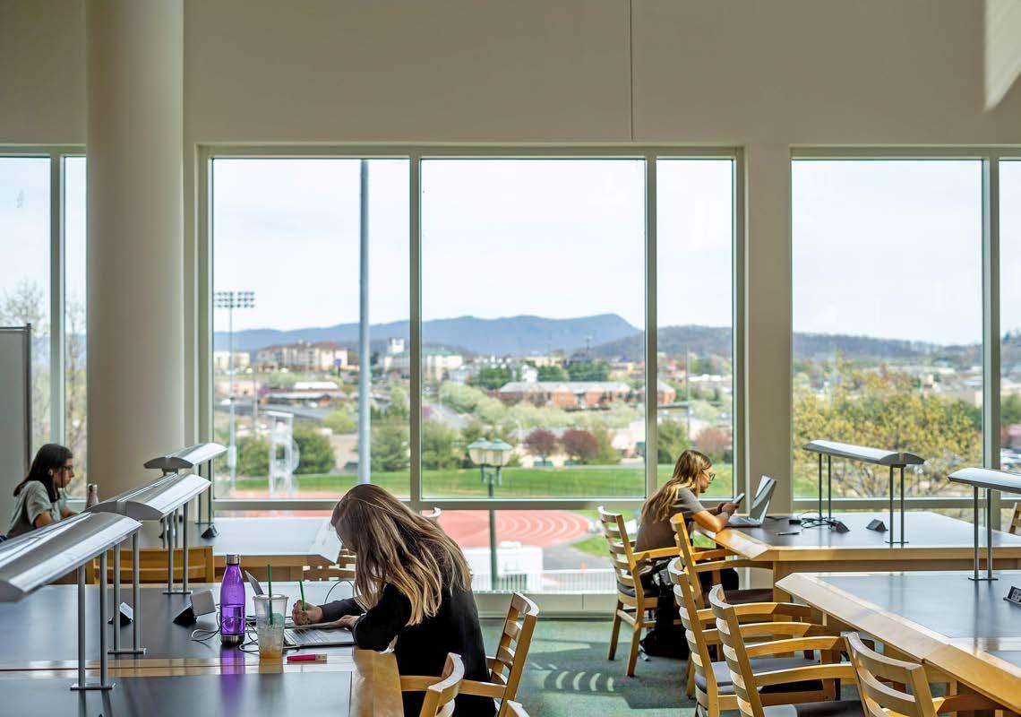 directions. “I imagine people will love the unobstructed sight lines as they take in the beautiful mountain views to the east and west. They’ll also have the ability to see campus from a different perspective,” Miller-Martin offered. When seen from the outside at night, the reading room will be a jewel-like beacon of light, highlighting the heart of the library for those passing by.