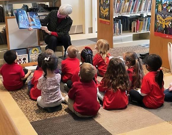 Karen Whetzel reads to preschoolers.