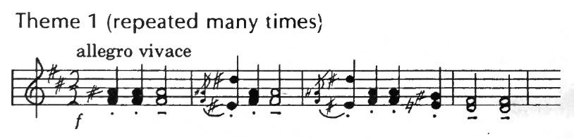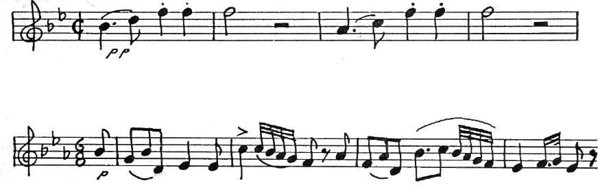 Soon other real melodies stand out above the clogging accompaniment, and these are repeated with different groups of instruments.