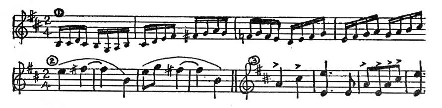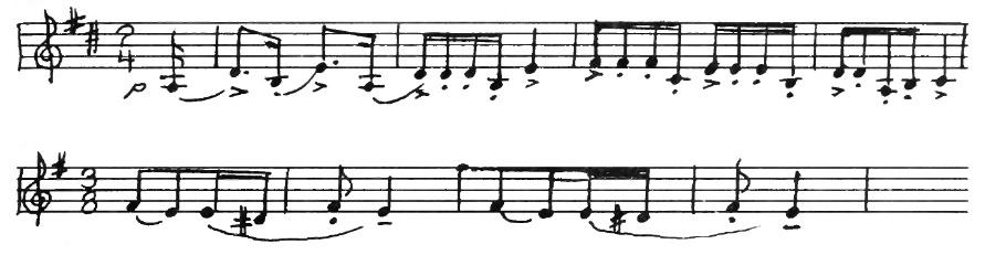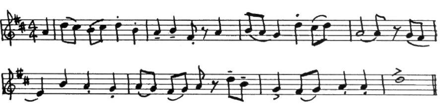 We do not know exactly how the Shepherd’s Hey was danced, but there was probably one part in which the dancers lined up opposite each other, making two rows like hedges bordering a path. “Hey” (pronounced hay) originally meant hedge. Whatever the other figures may have been, we are certain the dance was a lively one! Percy Grainger’s music tells us this. The score is marked Presto which means very fast. A violin begins with this tune: