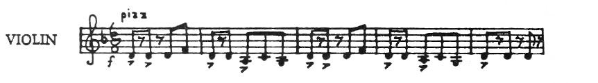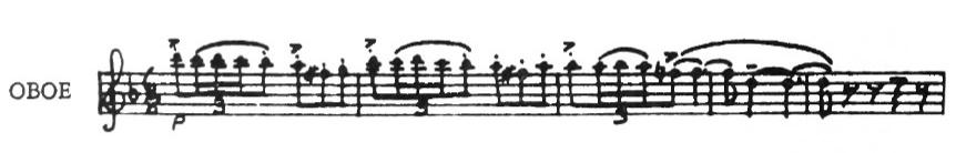 Gunther Schuller explains how he translated the imaginary twittering machine into musical terms. First of all he used a new kind of scale called a twelve-tone row. This is an arrangement of the chromatic scale in which all twelve tones are heard before any one can be repeated. In the beginning of the piece the violins and oboe make cranking up sounds. The chirps and twitters are mostly short, staccato notes. There are unexpected changes from loud to soft, contrasts between high and low pitches, fast and slow movement, as the machine gathers speed or dies down. Unusual sounds are made by “flutter-tonguing” on the trumpet and trombone; by harmonics on the stringed instruments; by glissandos on the string bass and cello;
