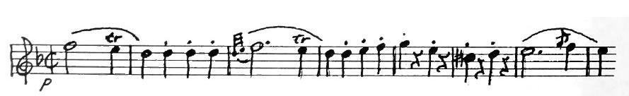 The second violins take up the tune a fourth lower in the key of D while the first violins continue with a countersubject. This idea repeats. But, you will be surprised to find that McBride uses another tune, too. The second theme is “I Love Coffee, I Love Tea.”: