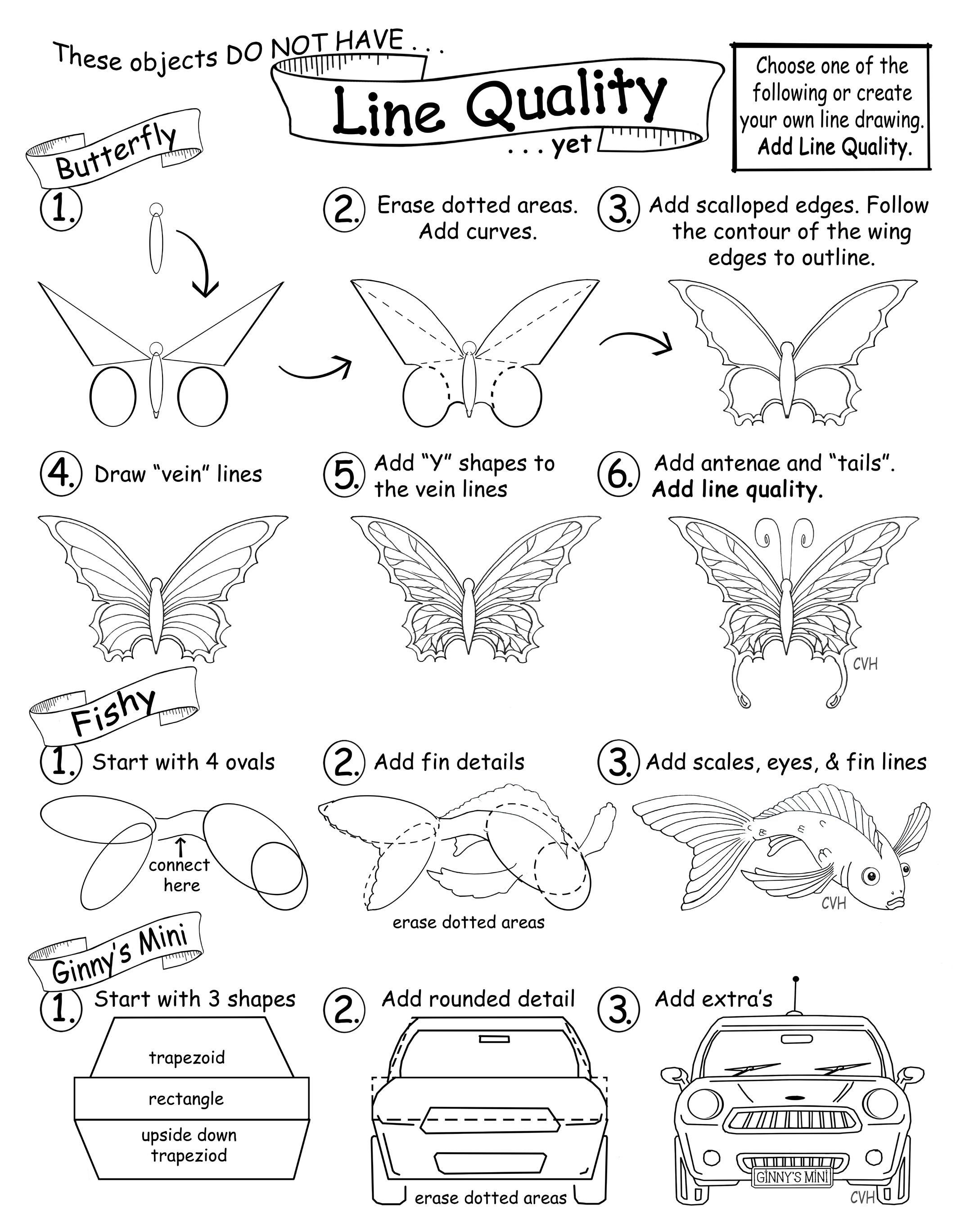 Line quality describes the appearance of a line - its look, not its direction (i.e., thick, thin, light, dark, solid, broken, etc.).