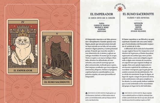 Inspiradas en la relación que mantenemos con nuestros gatos y las múltiples formas que tienen estos animales de expresarse, estas cartas bellamente ilustradas le tocarán la fibra sensible. Esperamos que le ayuden a explorar la magia del tarot.
