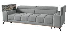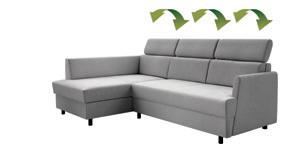 pow. spania: 195 x 126 regulowane zagłówki pojemnik na pościel 4 5 dł.: 228, gł.: 158, wys.: 81 / 100 tkanina: retro bliss 83 lt. grey FIORE BKL-2FR