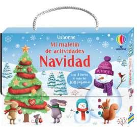 Un gracioso maletín de pequeño formato, totalmente exento de plástico, que contiene tres libros de actividades sobre la Navidad: uno de pegatinas, uno de colorear y otro de buscar y encontrar. Con asa para transportar fácilmente.