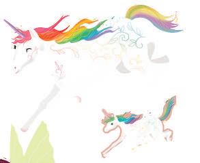 Ilustraciones de Antonia Miller extraídas de El vestuario en pegatinas - Los unicornios del arcoíris