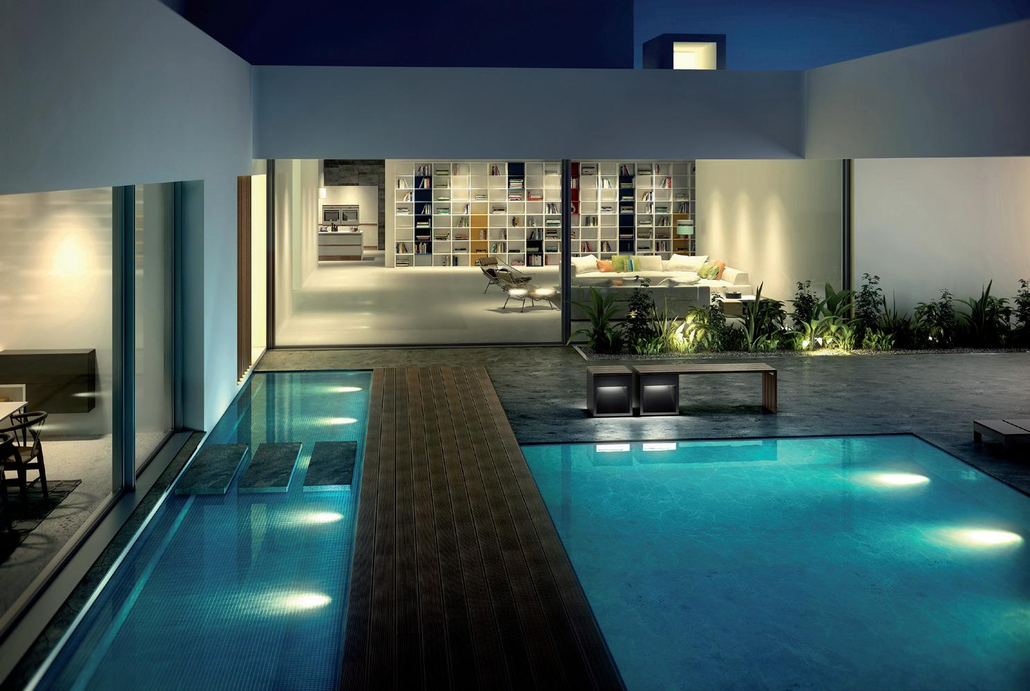 Der spezialisierte Fachhandel bietet Außenleuchten, die sich perfekt für die Terrassenbeleuchtung eignen und sich dekorativ in Architektur und Landschaft integrieren. Für die Grundhelligkeit können beispielsweise Außenleuchten in einen vorhandenen Dachüberstand integriert werden, aber auch Einbauleuchten, in die Wand oder die Terrasse eingelassen, zeichnen die Architektur nach und dienen der Grundbeleuchtung.