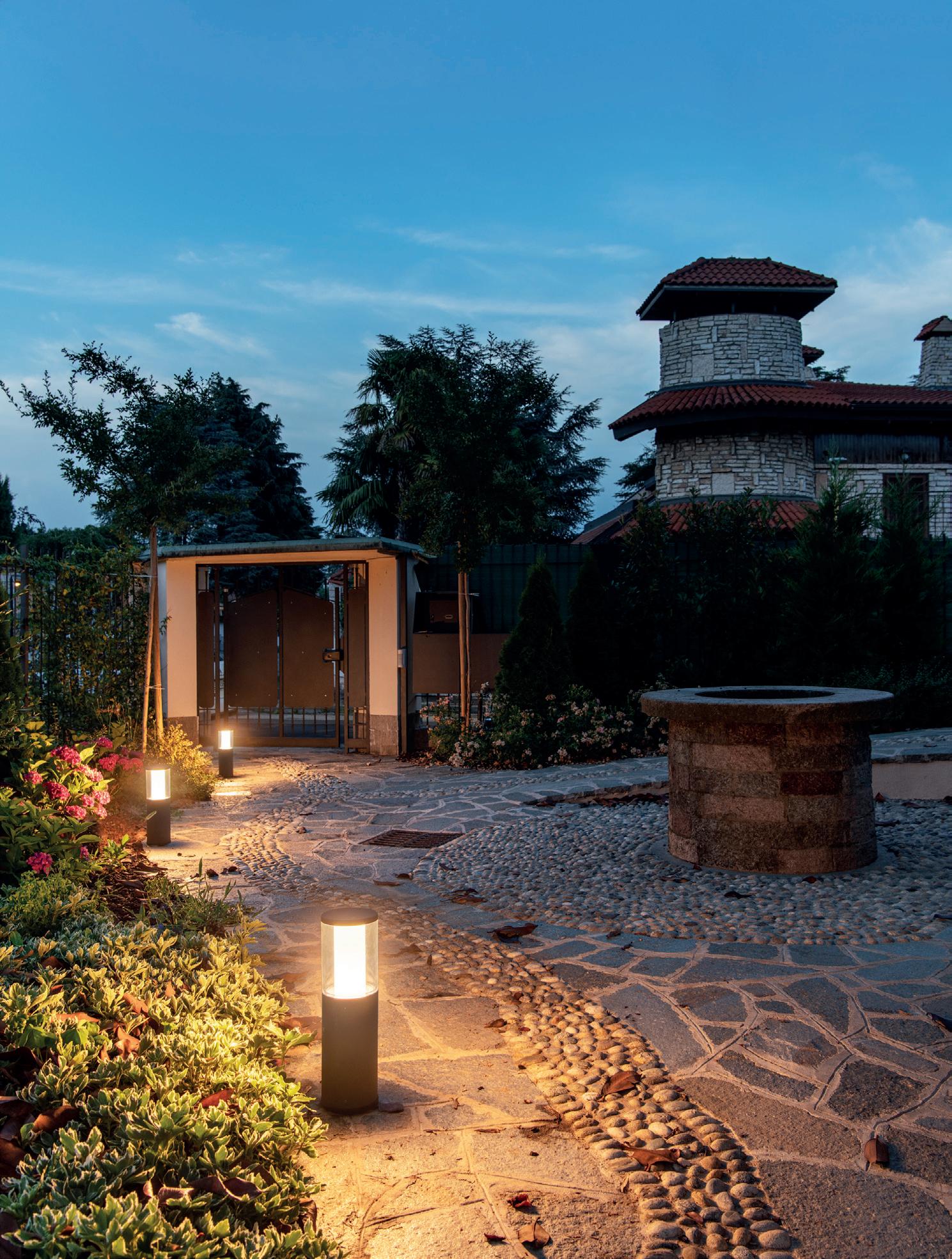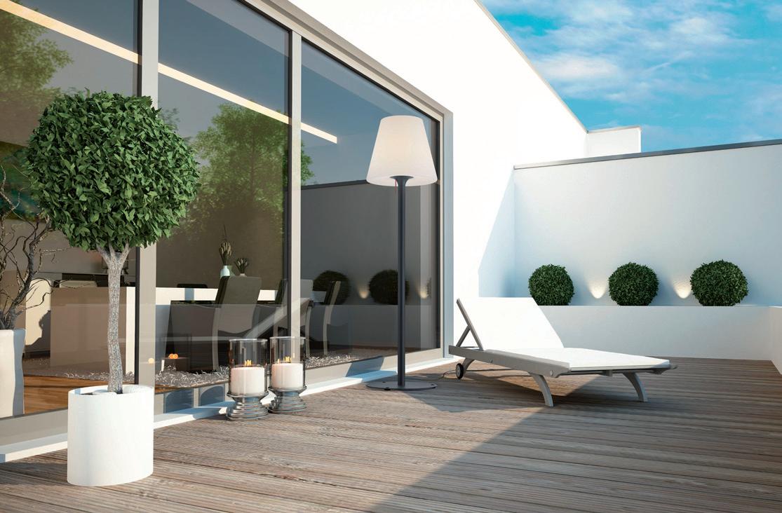 Eine Kombination aus ortsfesten und mobilen Leuchten liefert angenehme Farbund Helligkeitskontraste. Ortsveränderliche Leuchten für den Außenbereich lassen sich außerdem, je nach Jahreszeit, flexibel einsetzen.