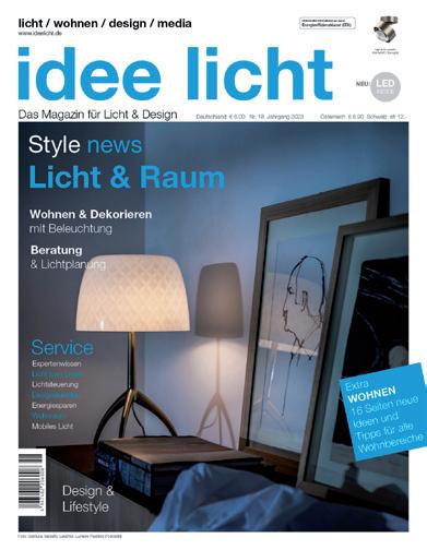 Deutschland € 6.00 Nr. 18 Jahrgang 2023 Österreich € 6.90 Schweiz sfr 12.licht / wohnen / design / media www.ideelicht.de Das Magazin für Licht & Design ExtraWOHNEN 16 Seiten neue Ideen und Tipps für alle Wohnbereiche Foto: Gianluca Vassallo, Leuchte: Lumiere Pastilles (Foscarini) Design & Lifestyle Service Expertenwissen Licht zum Lesen Lichtsteuerung Designleuchten Energiesparen Wohnraum Mobiles Licht Style news Inklusive aller Informationen zur neuen Energieeffizienzklasse (EEK) LED INSIDE NEU: idee licht Wohnen & Dekorieren mit Beleuchtung Beratung & Lichtplanung Licht & Raum High-End-Leuchte PUK MOVE (Top-Light)