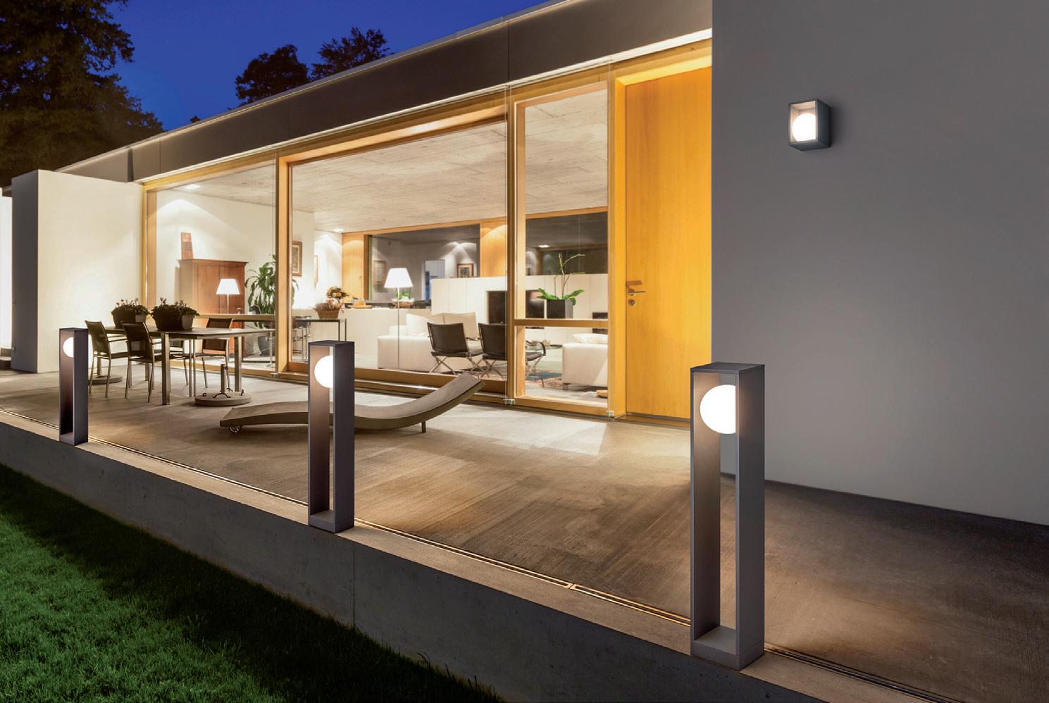 1. ANOU Wand- und Pollerleuchte. ANOU spielt raffiniert mit geometrischen Formen - eine weiße Acrylglaskugel schwebt in einem puristischen rechteckigen Rahmen. Das Licht wird von der Kugel diffus und blendfrei verteilt. EEK A++ bis A.