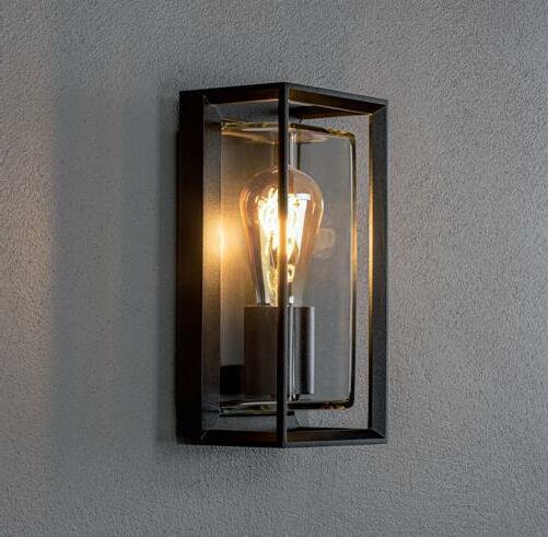 1. BRINDISI Wandleuchte mit Bewegungssensor. Wandleuchte für E27 Leuchtmittel. Material: Rahmen aus schwarz lackiertem Aluminium, Echtglas. Funktion: einstellbarer Bewegungsmelder. IP54, 230-240V. 7885-750 € 164,00