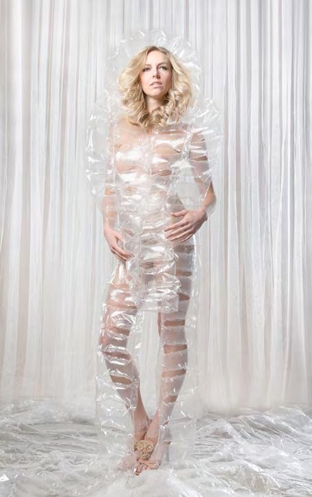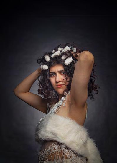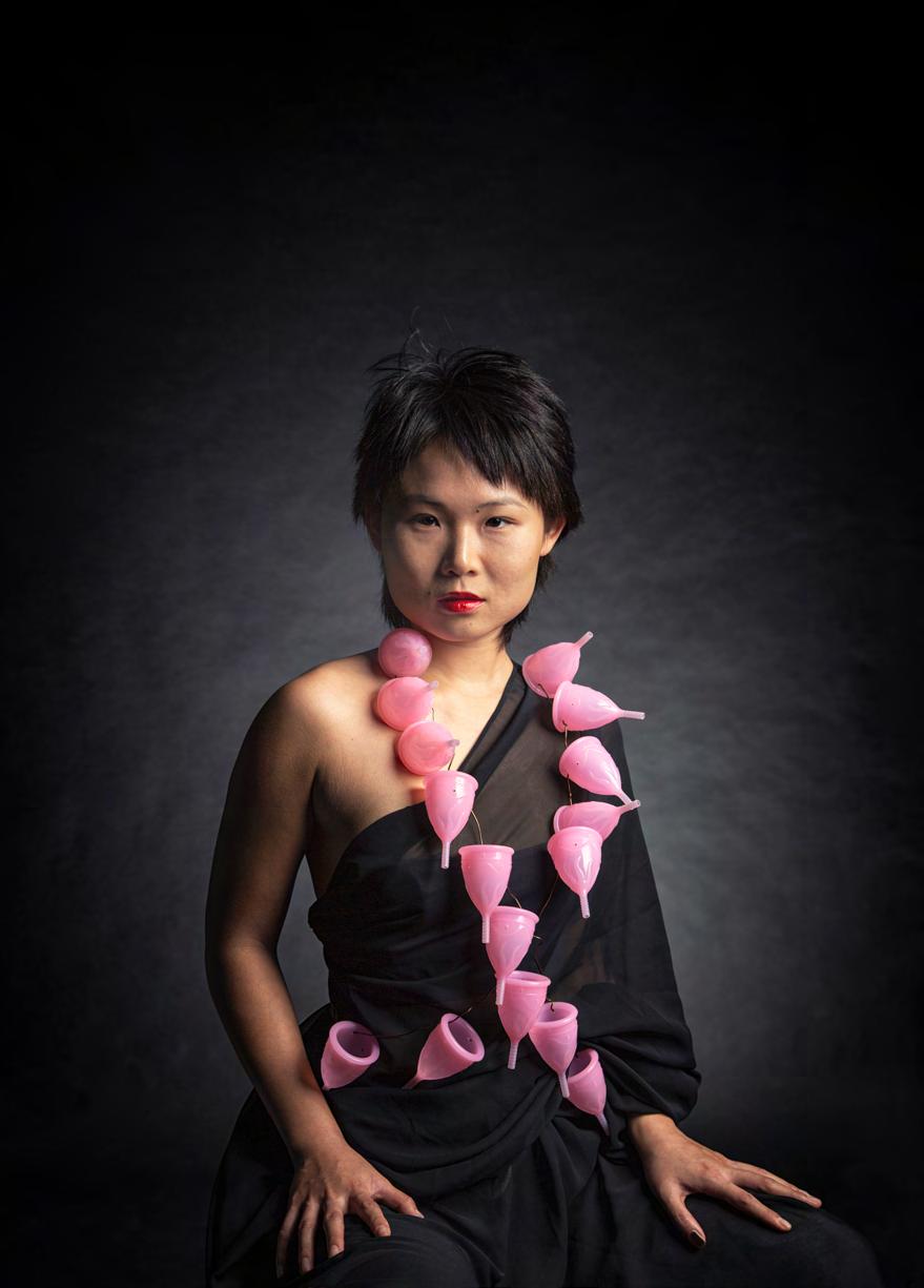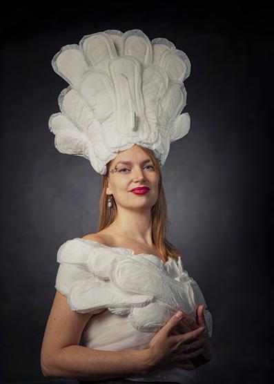 Een aanklacht tegen menstruatie armoede in beeld gebracht door drie vrouwen op overdadige en luxe wijze te versieren.