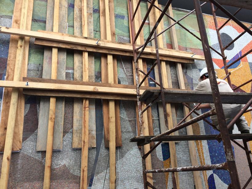 También comentó que la obra se encontraba con fisuras, abombamientos, desprendimientos y grietas a punto de colapsar, así como mosaicos que caían en la pileta frontal. Realizó estudios, investigaciones para buscar apoyo para la restauración, además de dar charlas inspiradas en la importancia del mural para motivar a su restauración.