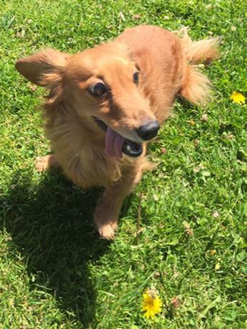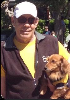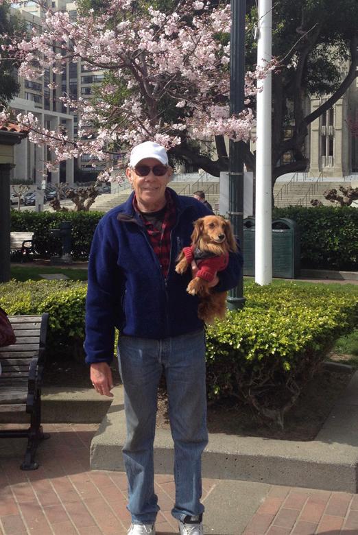 "Breakfast with Waffles": The only thing Micheal Al bert's dog "Waffles" has in common with a breakfast waffle is that they are both warm and fluffy. "Waffles " is a long haired miniature dachshund who hit the big time 9 years ago when he found Papa Micheal and He's been living in the lap of luxury on San Fran cisco's prestigious Nob Hill ever since. Waffles has a nice pre breakfast walk with trips to Huntington Park before lunch and, an evening walk as well. Papa re tired at 43 having enjoyed a career in the publishing world working with 'San Francisco Magazine' and later, with 'Smithsonian' Into the 'Golden Years', only miniature Dachshunds seem to be able to bring the joy of another heartbeat in the house.