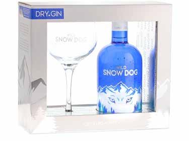 Conjunto Wild Snow Dog Dry Gin: caixa oferta com copo de gin gravado com a marca (copo de 55cl).