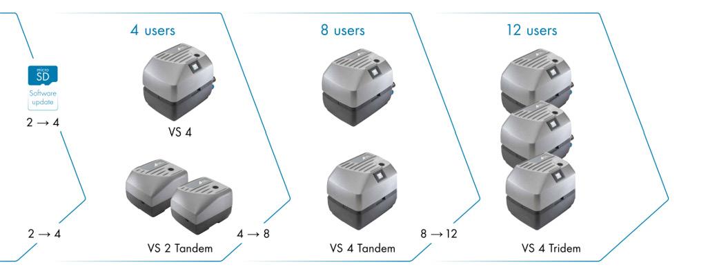 V (tørrsug) og VS (våtsug) systemene har vært på markedet i mange år og blitt kjent for kvalitet og driftssikkerhet