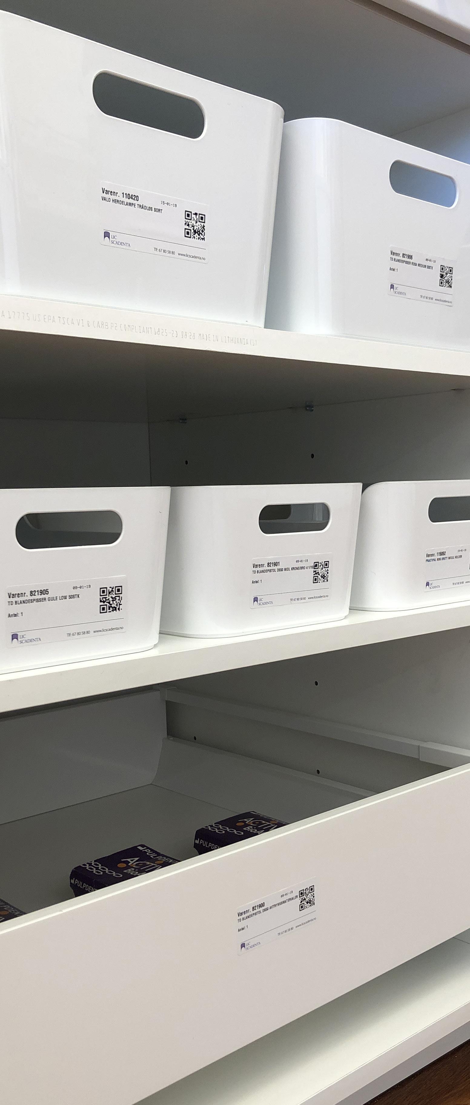 - vi tilbyr praktiske, gjennomsiktige bokser som gir god oversikt på lageret, dersom du ønsker bokssystem